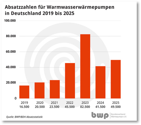 Beim Blick auf die verschiedenen Typen bleiben Luft-Wasser-Wärmepumpen weiter dominierend, mit 95 Prozent Marktanteil. Sole-Wasser-Wärmepumpen, die das Erdreich als Wärmequelle nutzen, stellten mit 16.000 Anlagen nur fünf Prozent des Absatzes. Zudem wurden 49.500 Warmwasserwärmepumpen abgesetzt. Hier meldet der Verband ein Plus von 20 Prozent gegenüber dem Vorjahr.