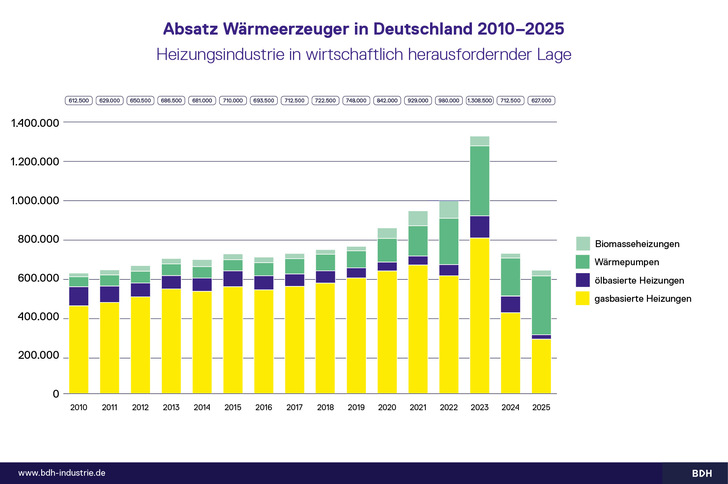 Erstmals stellten Wärmepumpen 2025 knapp die Hälfte aller in Deutschland verkauften Wärmeerzeuger. Gemäß den Zahlen des BDH sind Ölheizungen fast aus dem Markt ausgeschieden. Laut dem Eckpunktepapier der Koalition in Berlin zum geplanten Modernisierungsgesetz ist die Förderung bis 2029 gesichert.
